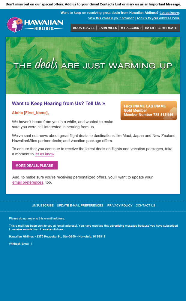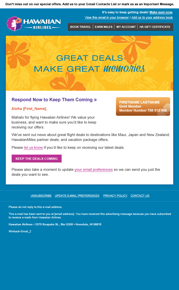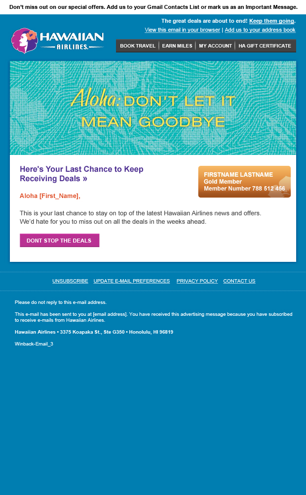 How do you win back customers who’ve left for cheaper airlines or online deals? Focus on brand voice and brand value. Role: Copy Director.